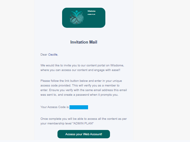Check your inbox for your access code. The code be sent from no-reply@wisdome.site.