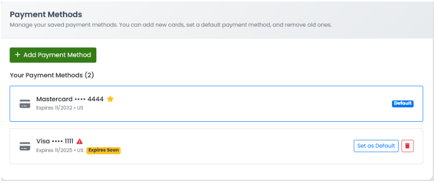 Set as 'Default': Make this the primary payment method used for all transactions.