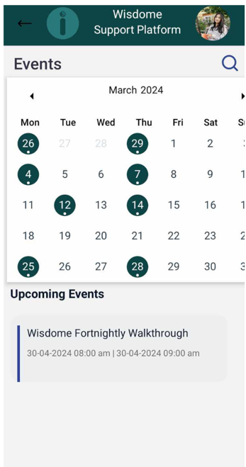 - Inside the Events section, navigate to the calendar displaying highlighted dates.