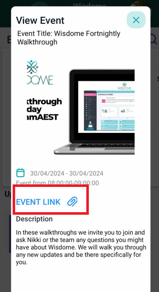 - If interested in attending the event, click the “Event link” section just above the event description field. Follow any prompts to complete the registration process.